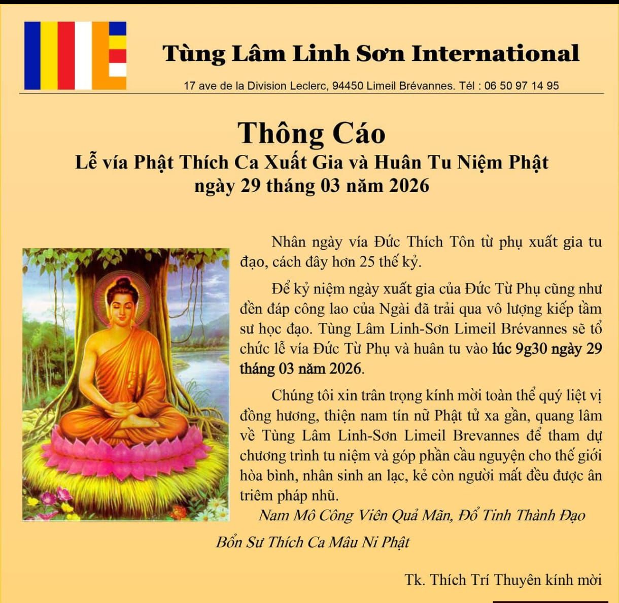 Récitation Bouddha Shakyamuni le 29 mars 2026